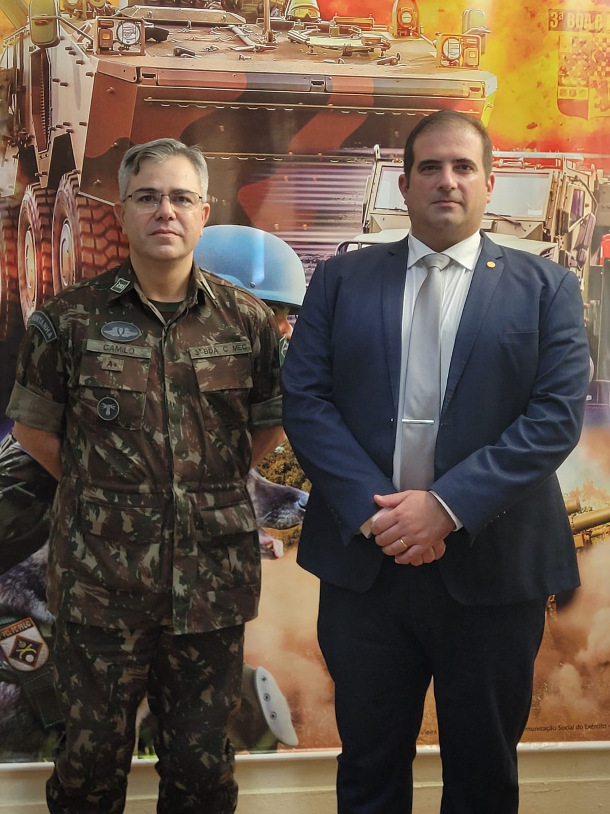 El Sr. Cónsul, Lic. Brian Rodríguez, y el Oficial de Cancillería, Sr. Ricardo Tadêo, fueron recibidos en audiencia por el Teniente Coronel de Caballería Camilo Augusto de Lima Mota, actual Jefe del Estado Mayor de la mencionada Brigada, con motivo de su presentación oficial ante las autoridades militares locales.