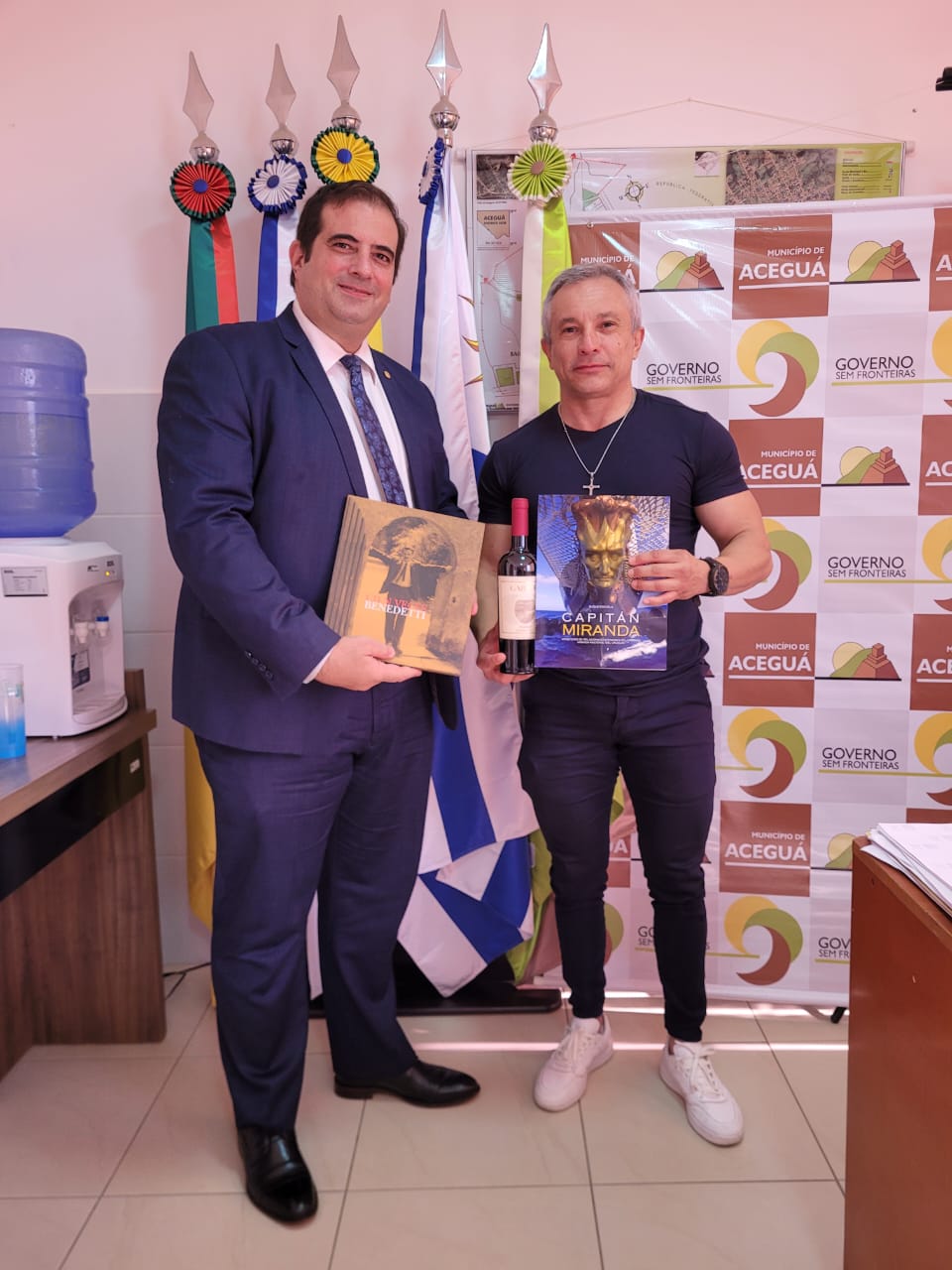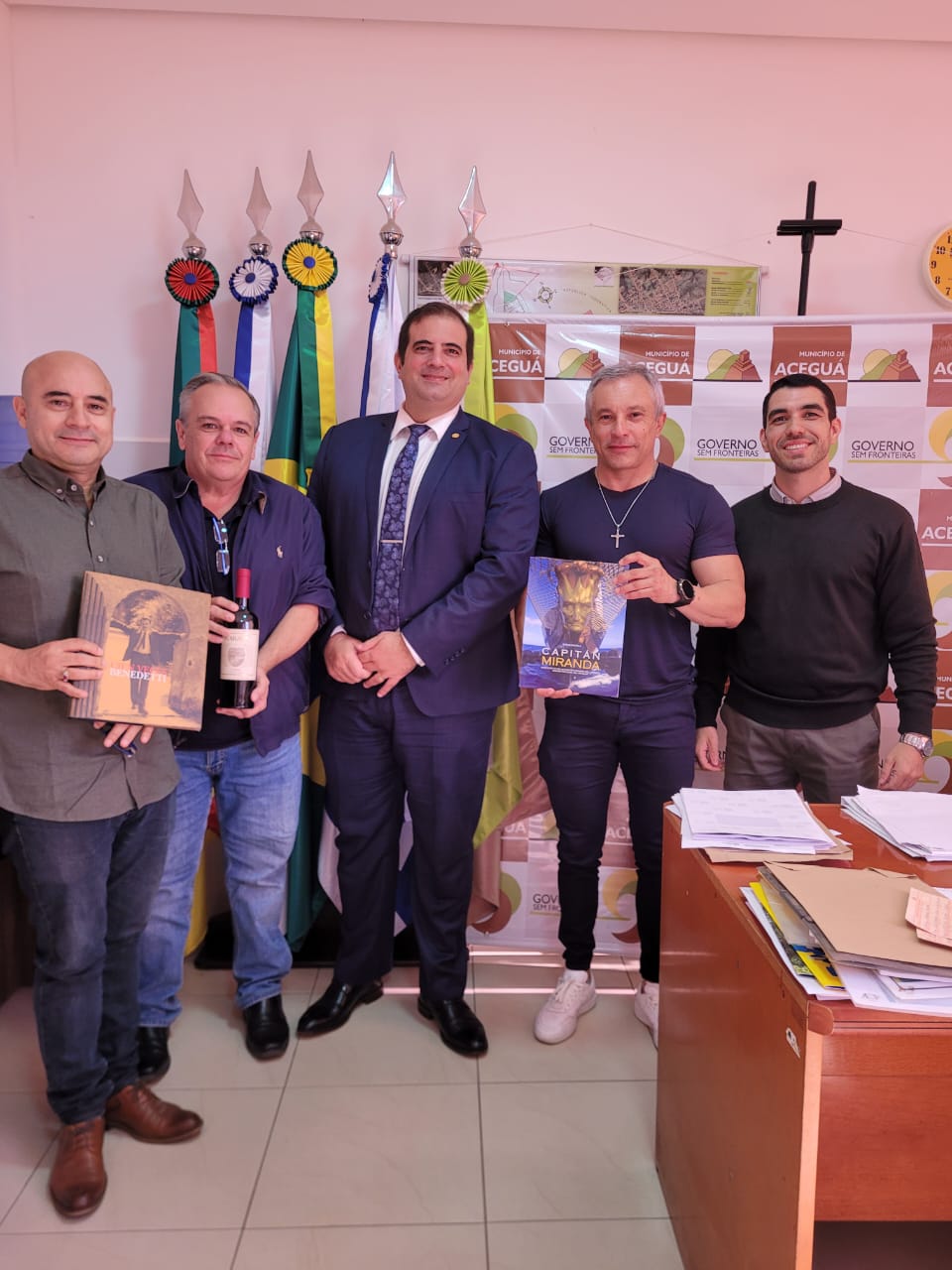 Se realizó la reunión de presentación y trabajo en el Despacho del Sr. Prefeito de Aceguá/RS, Marcus Aguiar (Peti), quien estuvo acompañado del Secretario de Educación y Cultura, Julio Monteiro y del Director de Asuntos Jurídicos, Alex Castillo.