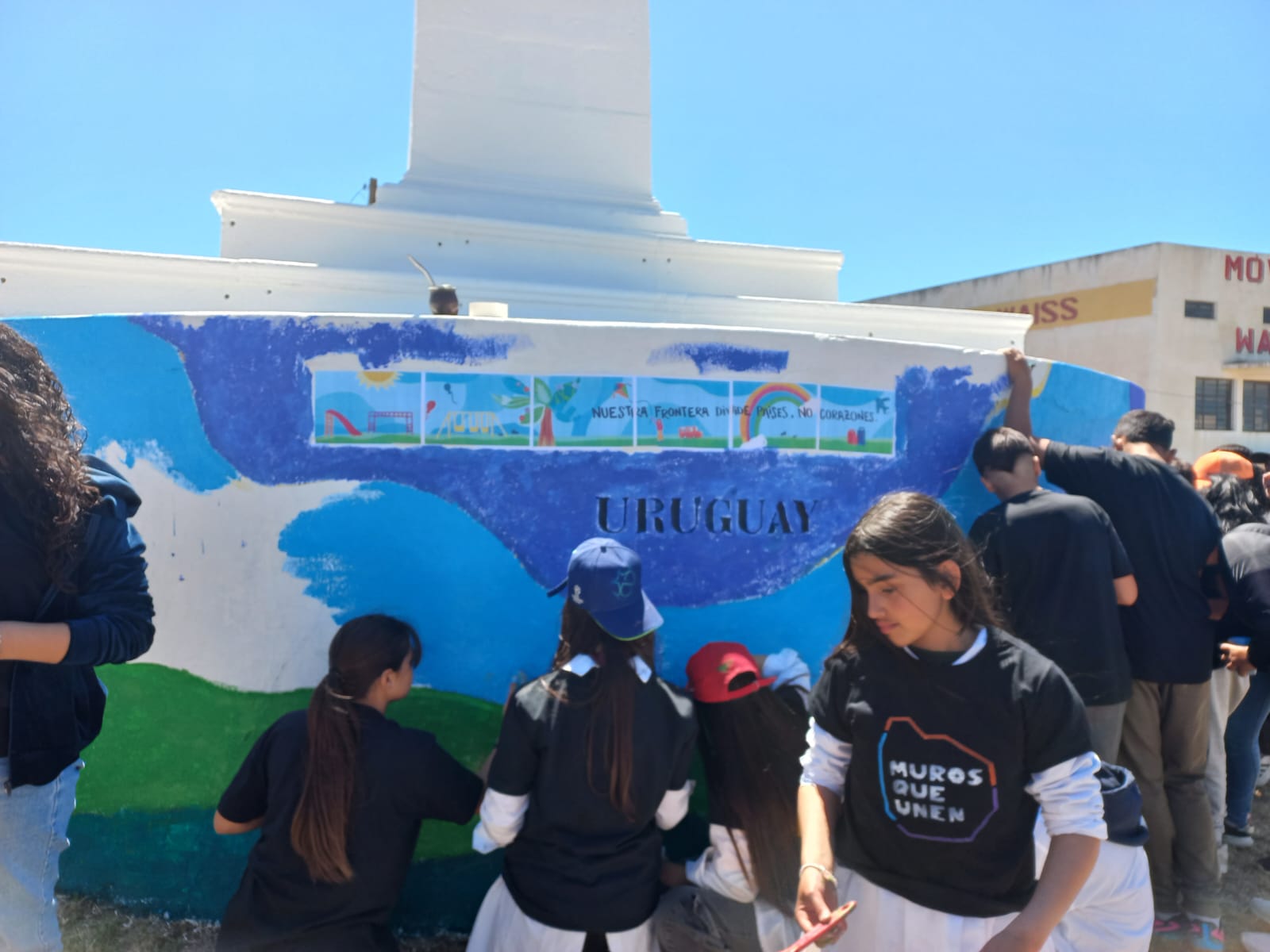 A atividade integrou o projeto interinstitucional “Muros que Unem”, coordenado pela Direção Nacional de Educação do MEC, pela ANEP, pela Organização dos Estados Ibero-Americanos (OEI) e pela Organização Internacional para as Migrações (OIM). Estiveram presentes o Prof. Luis Lereté, Coordenador de Educação Artística do MEC, e o Inspetor Departamental de Educação Inicial e Primária de Cerro Largo, Marcelo Alvariza, que acompanharam o desenvolvimento das ações.