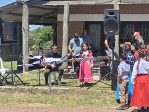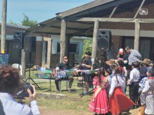 O clima da atividade foi marcado pela alegria e pela interação: crianças e adolescentes realizaram declamações, cantaram em espanhol e português e compartilharam momentos de integração. A cerimônia foi concluída com o convite às autoridades presentes —entre elas o Cônsul Brian Rodríguez— para participar da pintura do marco fronteiriço intervenido.