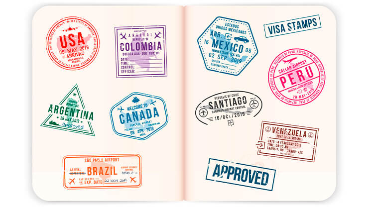 a) Visa de turismo, b) Visa de negocios, c) Visa de trabajo, d) Visa de estudio, e) Visa de reunificación familiar,