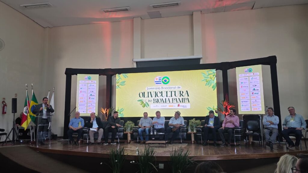 Entre os dias 4 e 6 de dezembro, a cidade de Bagé tornou-se o principal centro de debates sobre a olivicultura regional com a realização do Seminário Binacional de Olivicultura do Bioma Pampa, no auditório da Universidade IFSUL. O evento reuniu técnicos, produtores, pesquisadores, empreendedores e autoridades do Uruguai e do Brasil, consolidando-se como um espaço estratégico para a troca de conhecimentos, experiências e inovação no setor.